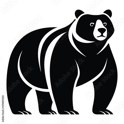 Fototapeta premium Black and white illustration of a standing bear with curved white details on...