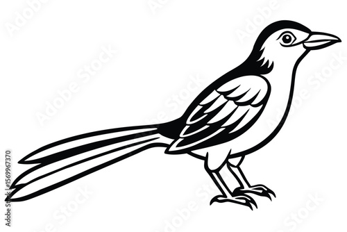© kanchanrani, Obraz premium Black and White Illustration of a Standing Magpie with Long Tail Feathers