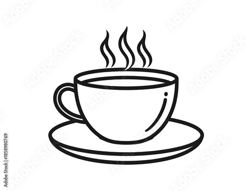 Fototapeta premium Black and white illustration of a steaming cup of coffee