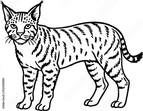 © MD. YOUSUF ALI, Obraz premium Black and White Illustration of a Striped Cat