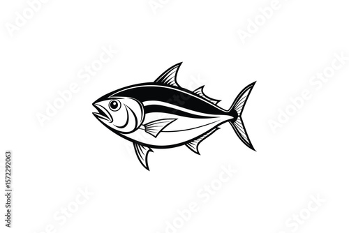 Fototapeta premium Black and White Illustration of a Tuna Fish on White Background
