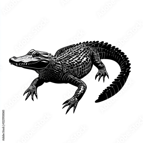 © CUNGKRING, Naklejka premium Black and white illustration of an alligator
