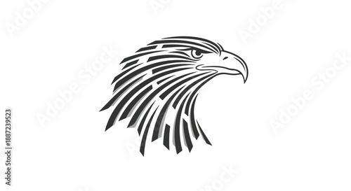 © MohZakki, Obraz premium Black and white illustration of an eagle's head in profile against a plain white background.