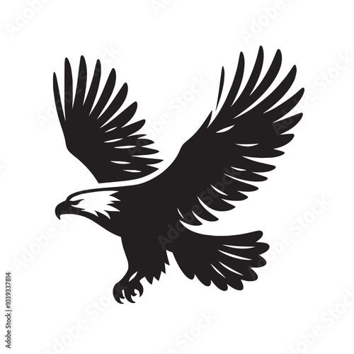 © dropideas, Obraz premium Black and white illustration of an eagle with wings spread.