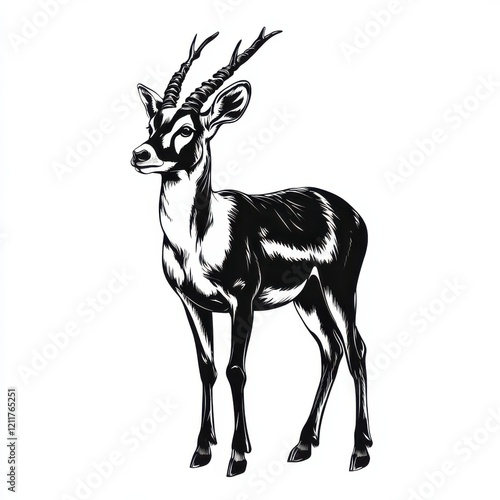 Fototapeta premium Black and white illustration of an elegant blackbuck.