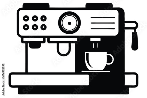 © pipp99, Fototapeta premium Black and White Illustration of an Espresso Machine with a Cup of Coffee