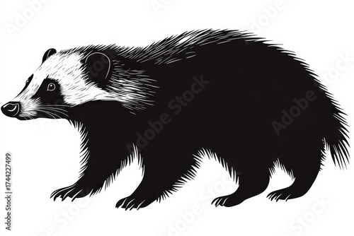 © designhutt, Obraz premium Black and white illustration of badger isolated on white background