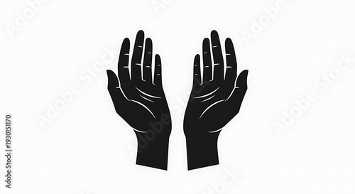 © Amri Grafika, Obraz premium Black and White Illustration of Open Hands Reaching Upwards on a White Background