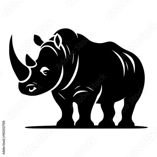 © Rizwan, Fototapeta premium Black and white illustration, rhinoceros silhouette, minimalist design