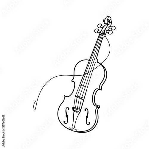 © Mizanur Rahman, Obraz premium Black and white illustration, violin sketch, stringed instrument