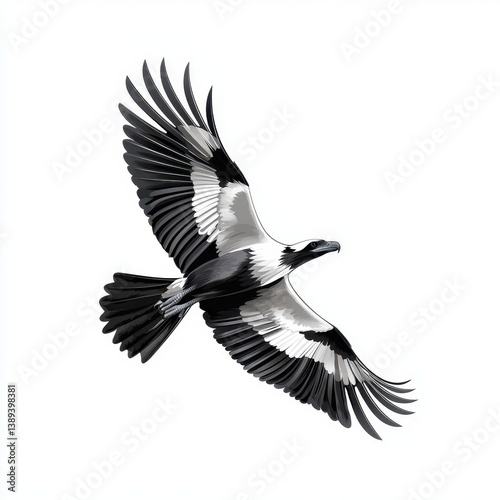 © Wiravan, Obraz premium Black And White Image Of A Large Bird In Flight Against A White Background