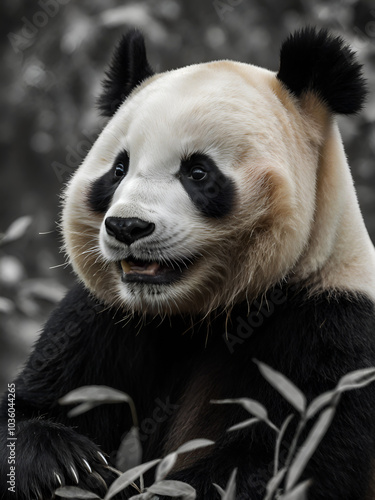 © VISHNU, Naklejka premium Black and white image of a panda in forest