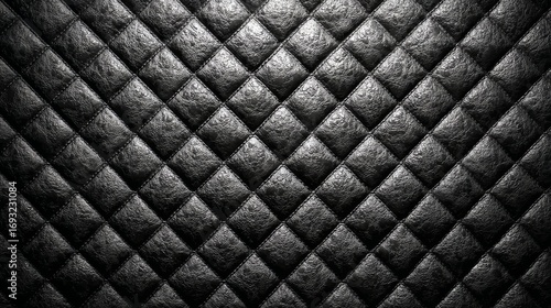 © panumas, Obraz premium Black and white image of a quilt with a diamond pattern. The quilt is made of leather and has a shiny