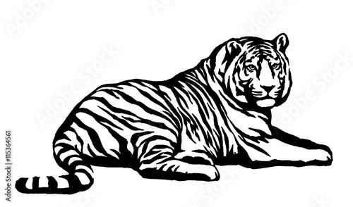 Fototapeta premium black and white ink draw tiger illustration