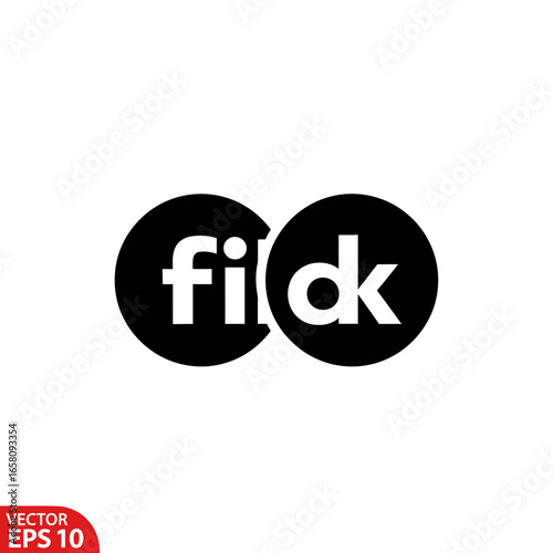 Fototapeta premium Black and white interlocking circle logo with the letters fidk.
