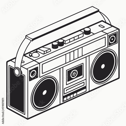 © rabi, Obraz premium Black and white isometric boombox vector illustration