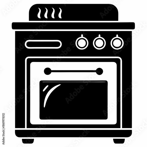 © Creative Graphic Des, Obraz premium Black and white kitchen range oven icon illustration stovetop cooking appliance home kitchenware