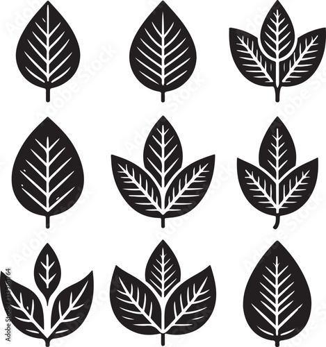 © Jihad, Obraz premium Black and white leaf icon silhouette vector set
