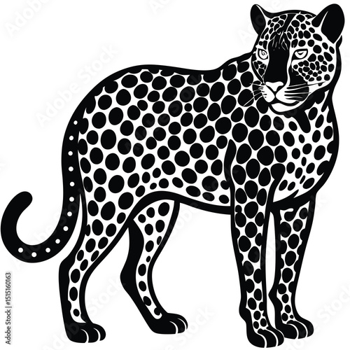 Fototapeta premium Black and White Leopard Illustration - Wildlife Art Design"