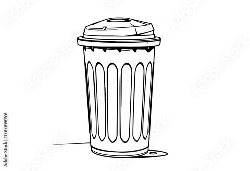 Fototapeta premium Black and white line art drawing of a street trash can, simple design,...