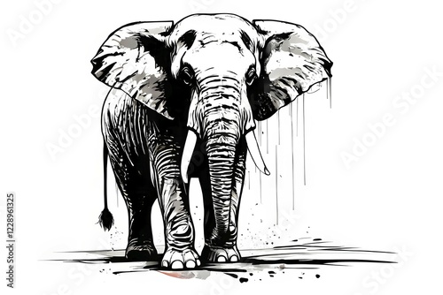 © Stefan Schurr/imageBROKER, Fototapeta premium Black and white line art elephant, AI generated