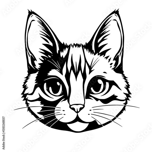 Fototapeta premium Black and white line art illustration of a cat's face looking directly...