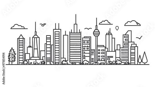 Fototapeta premium Black and White Line Art Illustration of a City Skyline