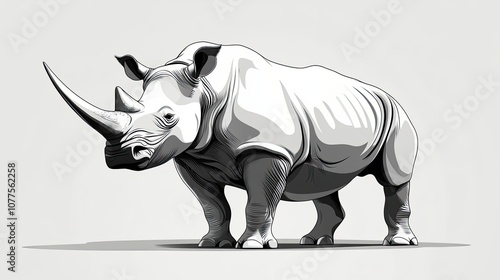 Fototapeta premium Black and White Line Art Illustration of a Rhinoceros