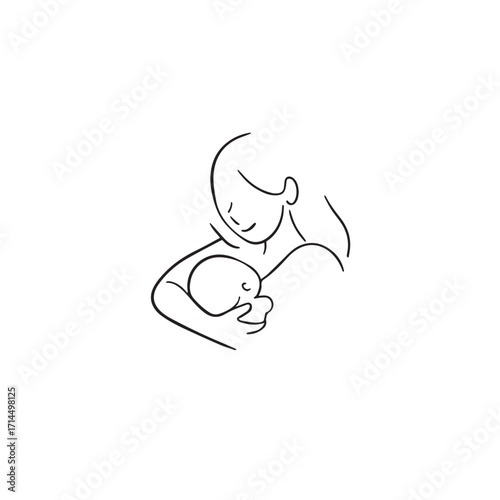 © Miftah, Fototapeta premium Black and white line art of a beautiful mother lovingly embracing her baby minimalist tender illustration