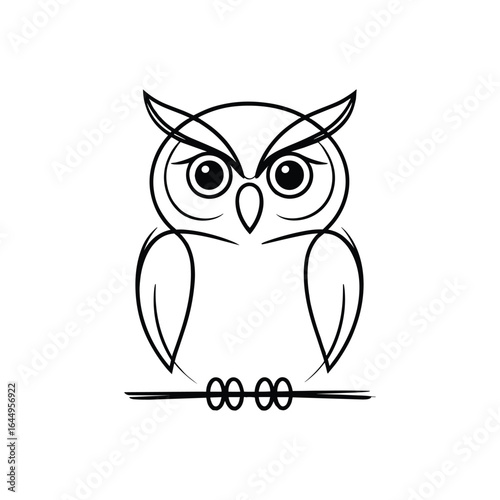 © Arif, Fototapeta premium Black and white line art of an owl perched on a branch bird