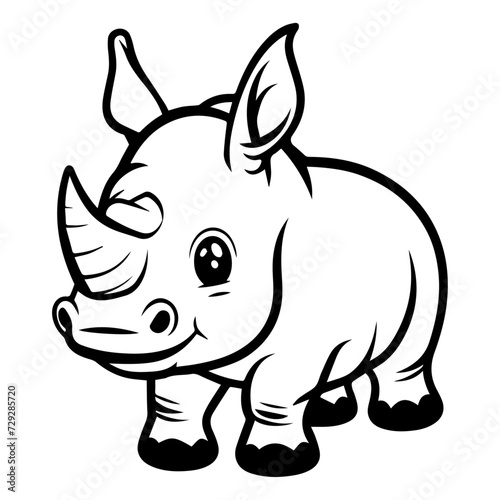 Naklejka premium Black and White Line art rhinoceros. art Linear African animals