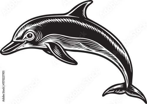 Fototapeta premium Black and white line art Silhouette dolphin nvector doodle art in white...