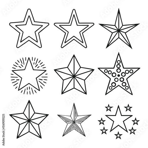 Obraz premium Black and white line art star icons with various designs graphic