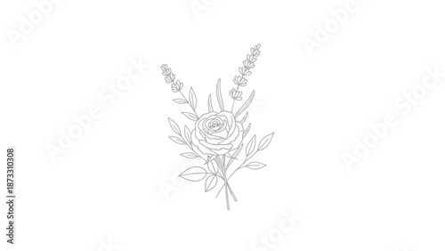 © gunidea, Fototapeta premium Black and white line drawing flowers.