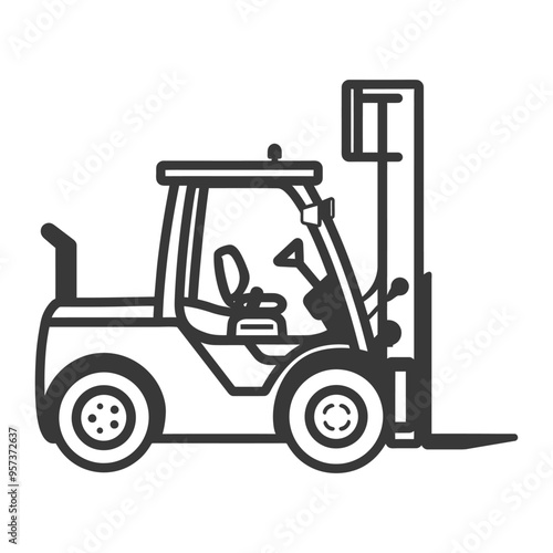 © NikahGeh, Fototapeta premium Black and White Line Drawing of a Forklift