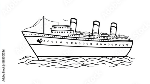 Obraz premium Black and white line drawing of a large ocean liner