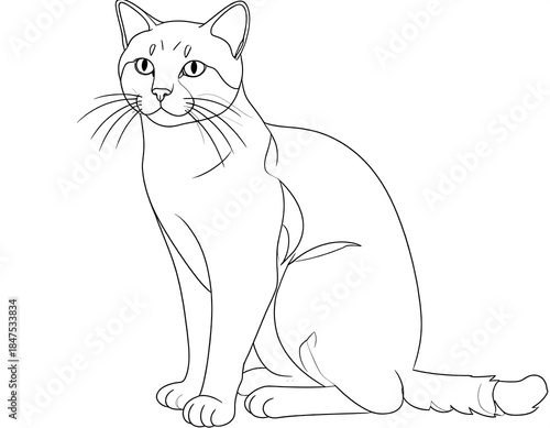 Obraz premium Black and white line drawing of a sitting cat with sharp whiskers