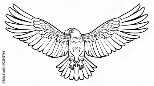 © Rere_Art151, Fototapeta premium Black and White Line Drawing of an Eagle in Flight with Spread Wings