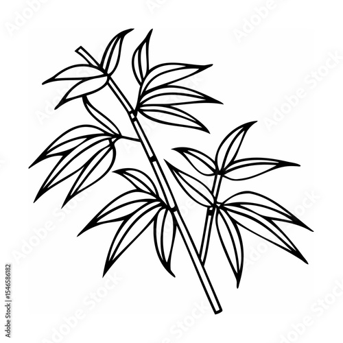 Fototapeta premium Black and White Line Drawing of Bamboo Branches with Leaves