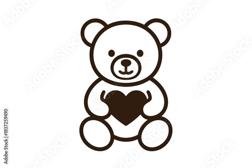 © Dima, Fototapeta premium Black and white line illustration of a teddy bear sitting and holding a large heart with both paws.