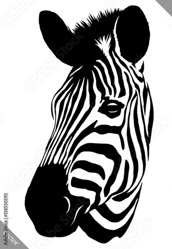 © Turaev, Fototapeta premium black and white linear paint draw zebra vector illustration