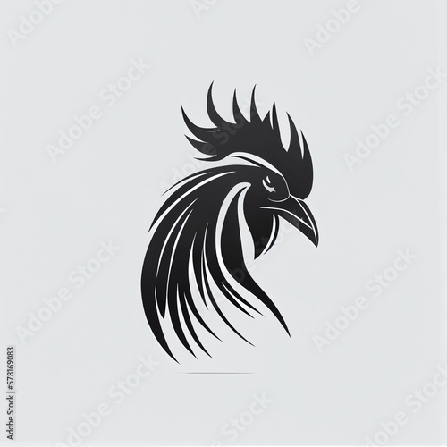 © Régis Cardoso, Obraz premium Black and white logo of a rooster's head, Generative Ai