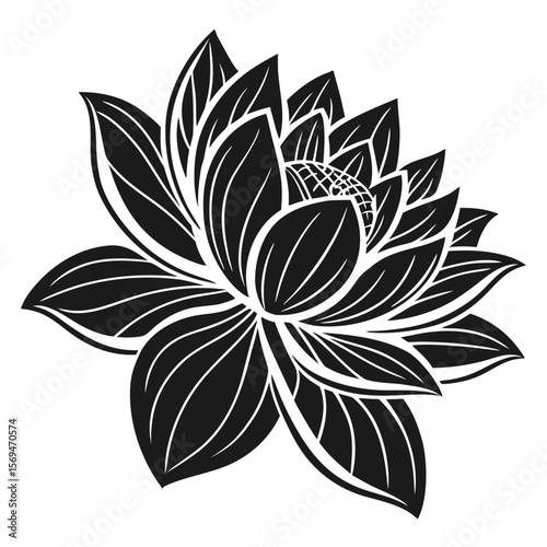 Fototapeta premium Black and White Lotus Flower Silhouette Isolated on White Background