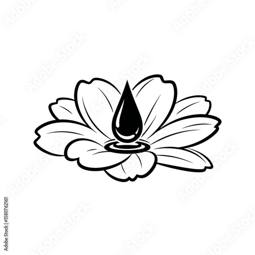 © Neuroillustrator3033, Obraz premium Black and White Lotus Flower with Droplet Design