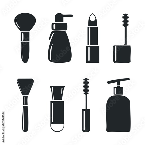 Obraz premium Black and white makeup and skincare tools collection