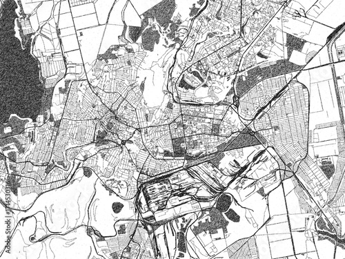 © W&S Stock, Fototapeta premium Black and white map poster of Kryvyy Rih, Ukraine, illustrated in hand-drawn style.