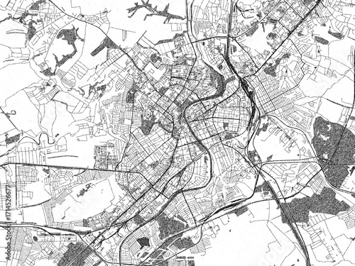 © W&S Stock, Fototapeta premium Black and white map poster of Orel, Russian Federation, illustrated in hand-drawn style.