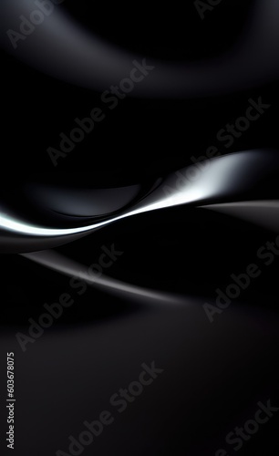 © HAKKI ARSLAN, Fototapeta premium Black and white metallic shiny wavy lines background with dark color tone.