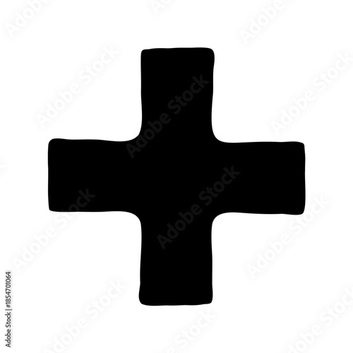 Fototapeta premium Black and white minimalist plus sign with uneven edges on a white background