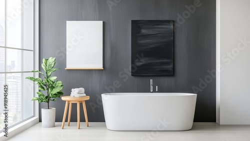 © cloud7days, Fototapeta premium Black and white modern art mural wallpaper with dramatic brushstrokes.